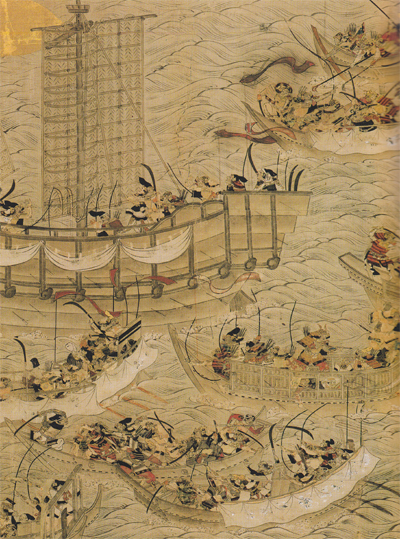 源平両陣が、海上、約 3キロを隔てて向き合い、共に一斉に鬨の声をあげる。